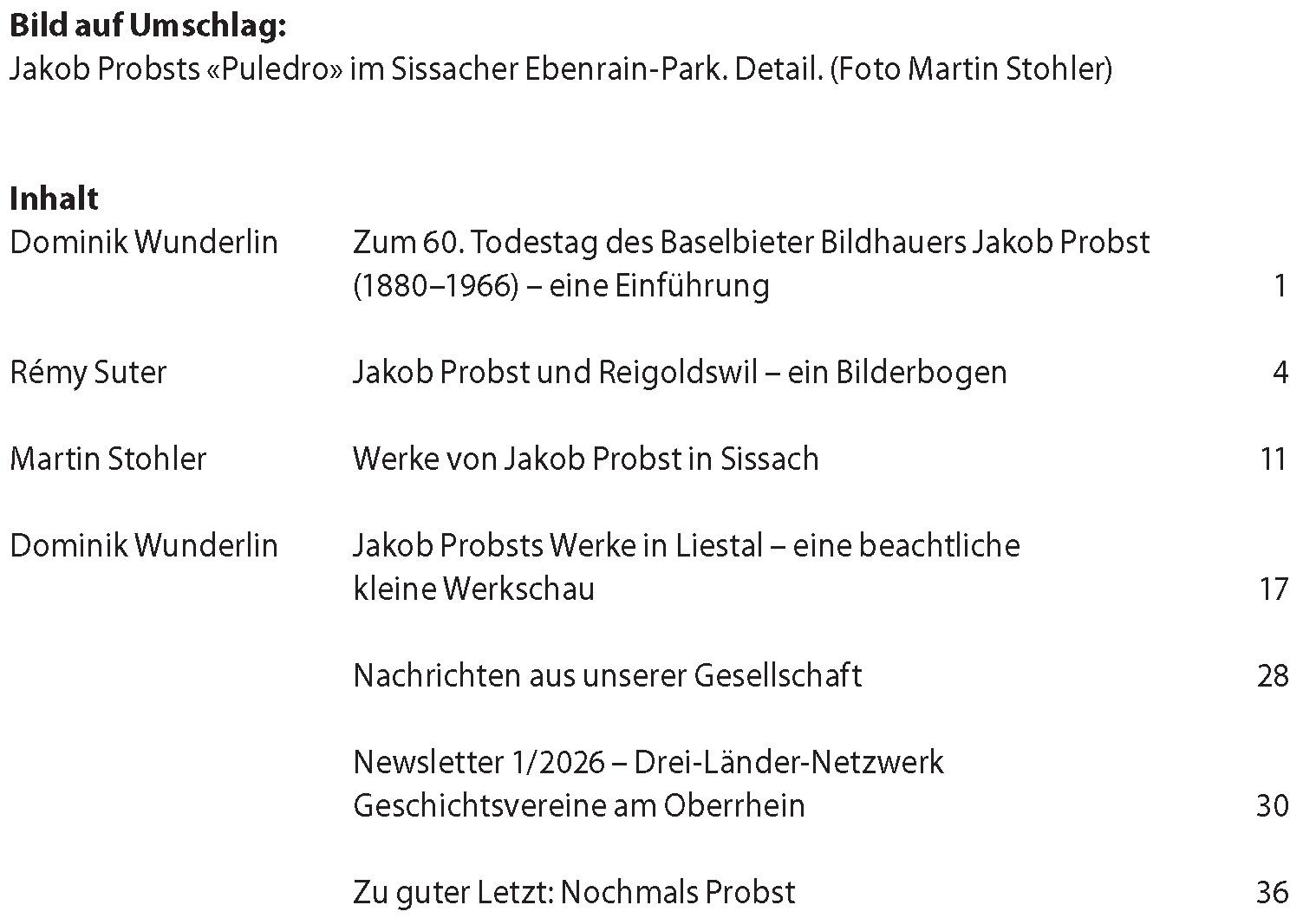 ... bestehen seit 1936 und sind die einzige kulturhistorische Vierteiljahrszeitschrift der Nordwestschweiz.